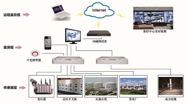 系統(tǒng)提供接口輸出開關(guān)量,可直接接入現(xiàn)場的火災(zāi)控制器,實現(xiàn)火災(zāi)報警并在消防值班室顯示,也可通過手機(jī)短信發(fā)送信息至相關(guān)人員手機(jī)。
